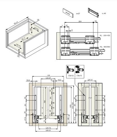 - Výsuv ND60 (18mm) s dvojitou bočnicí, 199/500...