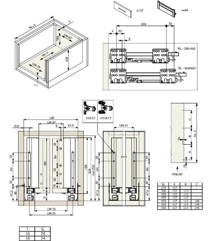- Výsuv ND60 (18mm) s dvojitou bočnicí, 199/550...