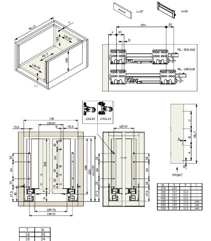 - Výsuv ND60 (18mm) s dvojitou bočnicí, 199/550...