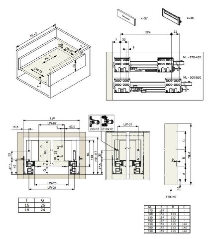 - Výsuv ND60 (18mm) s dvojitou bočnicí, 84/270...