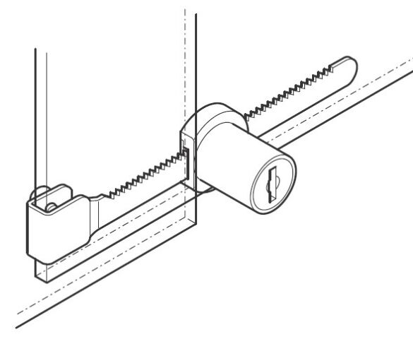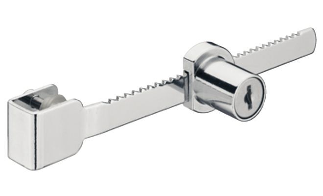 Zámek slouží k uzamykání dvou posuvných skleněných dveří bez nutnosti vrtání otvoru do skla.