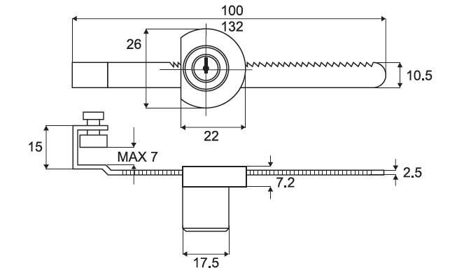 Obsah balení: odnímatelný zámek, ozubené blokovací táhlo, 2ks klíče, šroub k uchycení