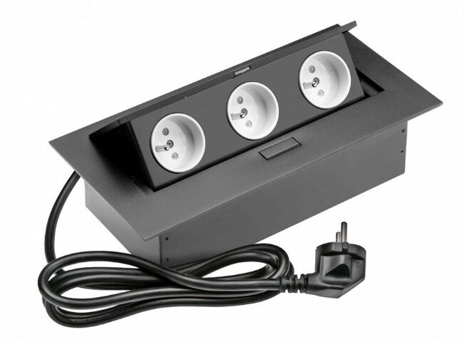 Zásuvka - vestavná stolní 3X zásuvka, přívodní kabel, černá
