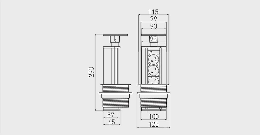 - Zásuvka - věž výsuvná 3x220V stříbrná