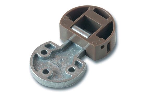 Závěs pro sklopná barová dvířka vyrobený ze slitiny zinku a hnědého plastu.
