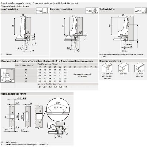Základní podložky: ostatní viz. katalog Blum