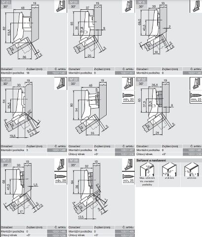 Nutno doobjednat montážní podložku CLIP základní podložky: ostatní viz. katalog Blum