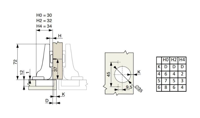 - nábytkový závěs miskový pro polonaložené dveře bez dovírací pružiny