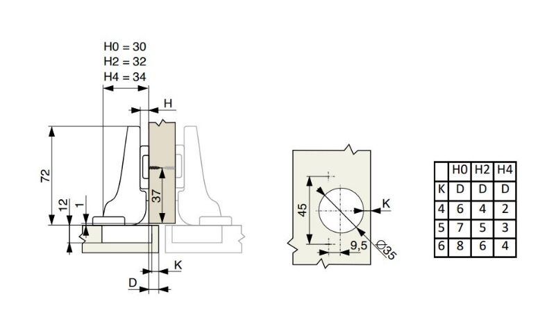 - nábytkový závěs miskový pro polonaložené dveře