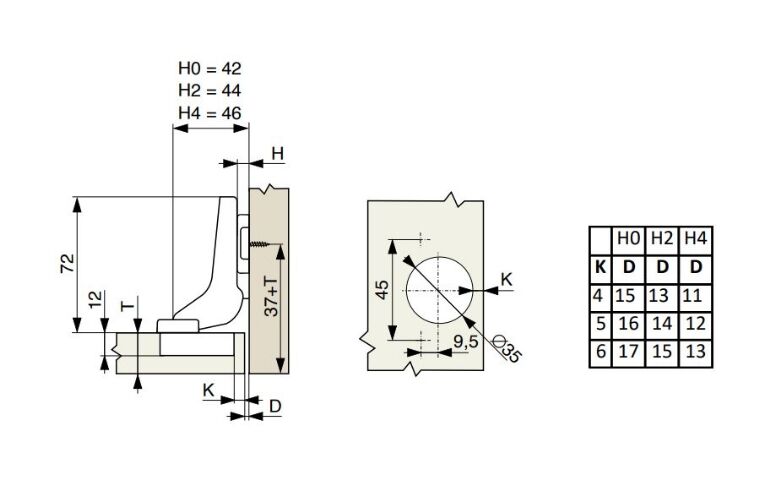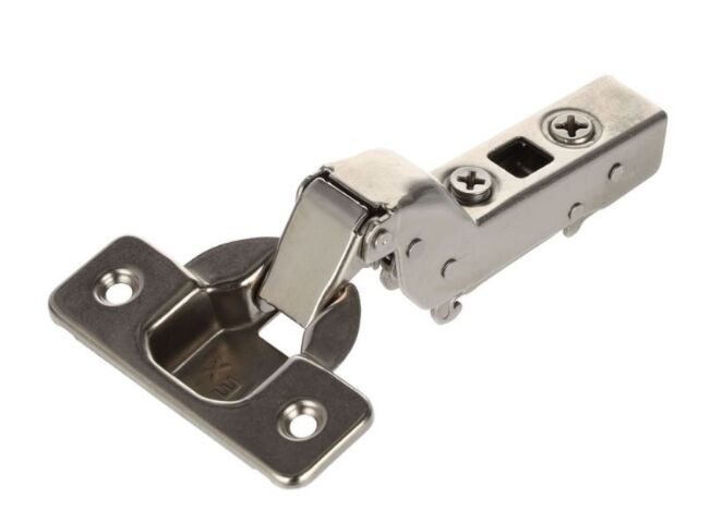 - v ramínku závěsu je zapuštěný kulatý excentrický šroub s velkým rozsahem pro snadné seřízení mezery mezi korpusem a dvířky