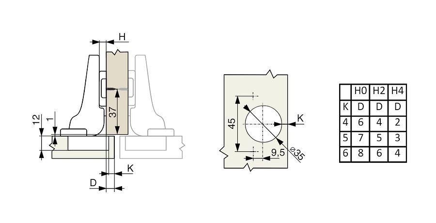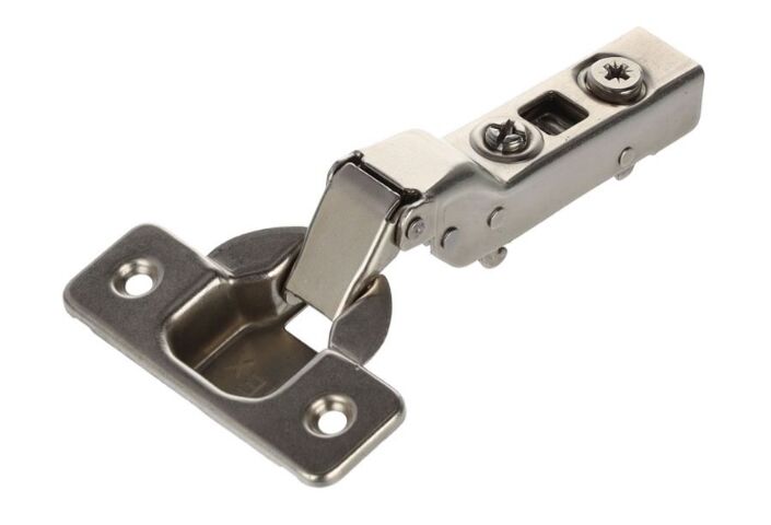 - na ramínku závěsu je excentrický šroub pro snadné seřízení mezery mezi korpusem a dvířky